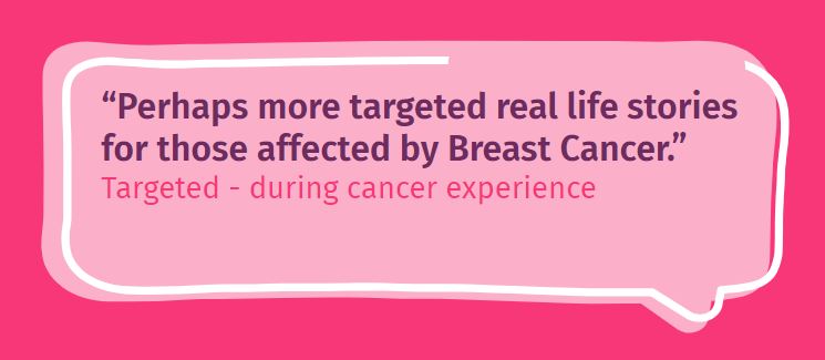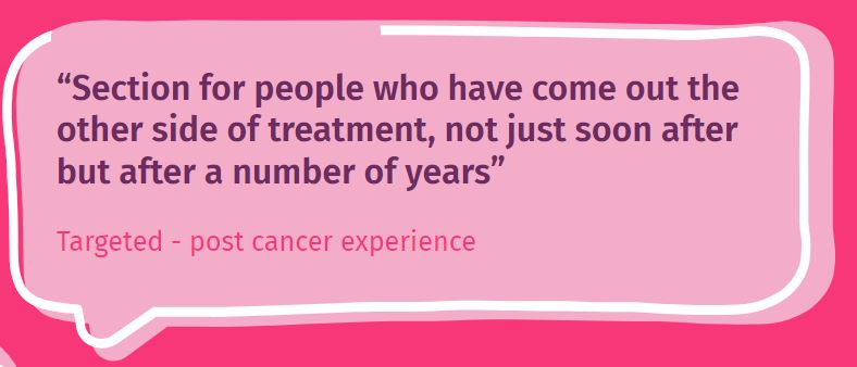 Audiences want improvements in the ability to find the latest responses more easily and quickly. With a need for a more granular structure with specific spaces or rooms based on age, treatment, diagnosis and cancer type. This suggests a more accurate and descriptive forum taxonomy and specific topic structure. With better topic filtering. Improved management – clearing up old conversations automatically highlighting the latest responses