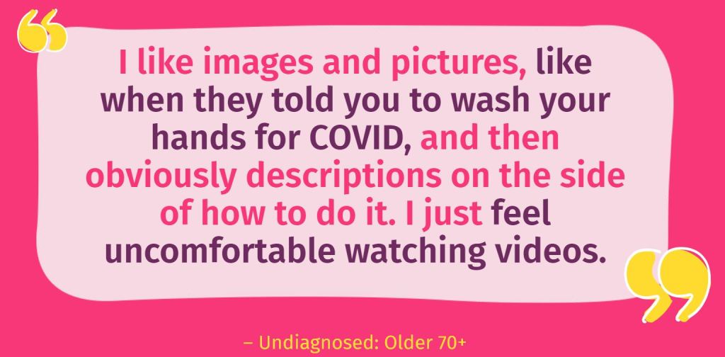Audiences want to be directed and helped to connect to others like them (location, age, gender, type of experience) to share their experience – this helps with isolation and information swapping